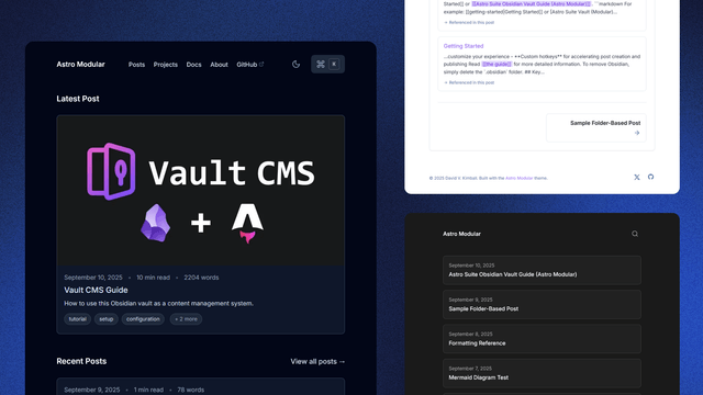 A beautifully minimal, accessible blog theme for Astro, featuring the elegant Catppuccin color palette. This theme comes pre-configured with example content featuring "Max Bytefield" - a fun developer character perfect for showcasing what a developer portfolio could look like.