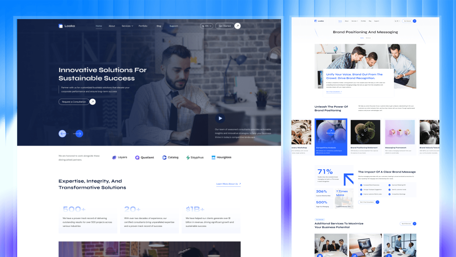 2. Looka – A professional theme crafted for consultants, agencies, IT services, legal, and finance β€” built with accessibility, speed, and conversion in mind.