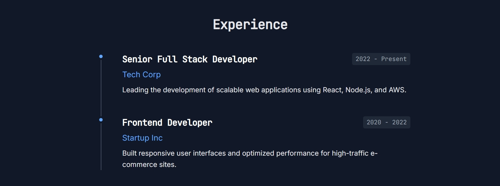 • Software Developers: Showcase your GitHub repositories, tech stack, and work experience in a clean, readable format.