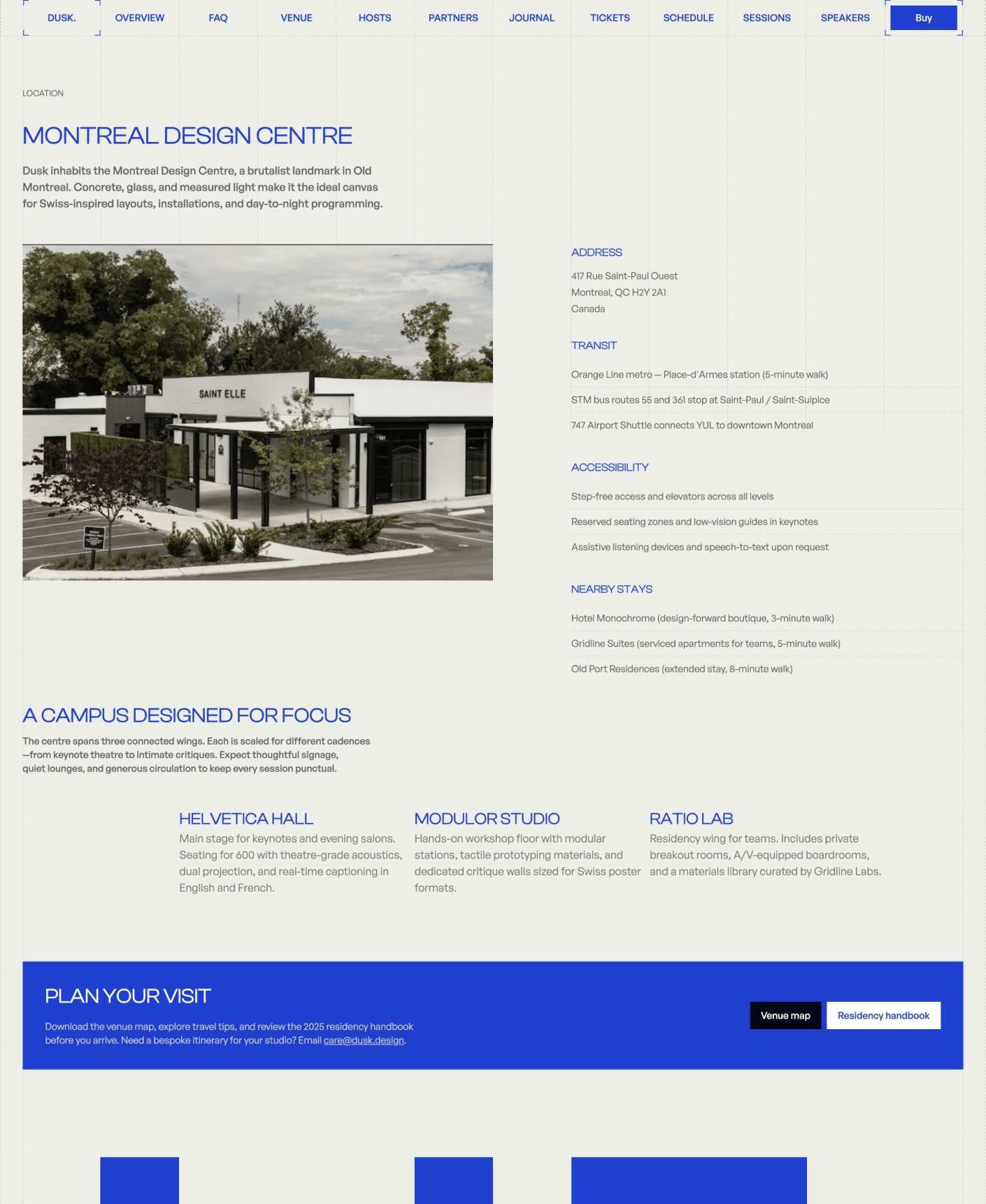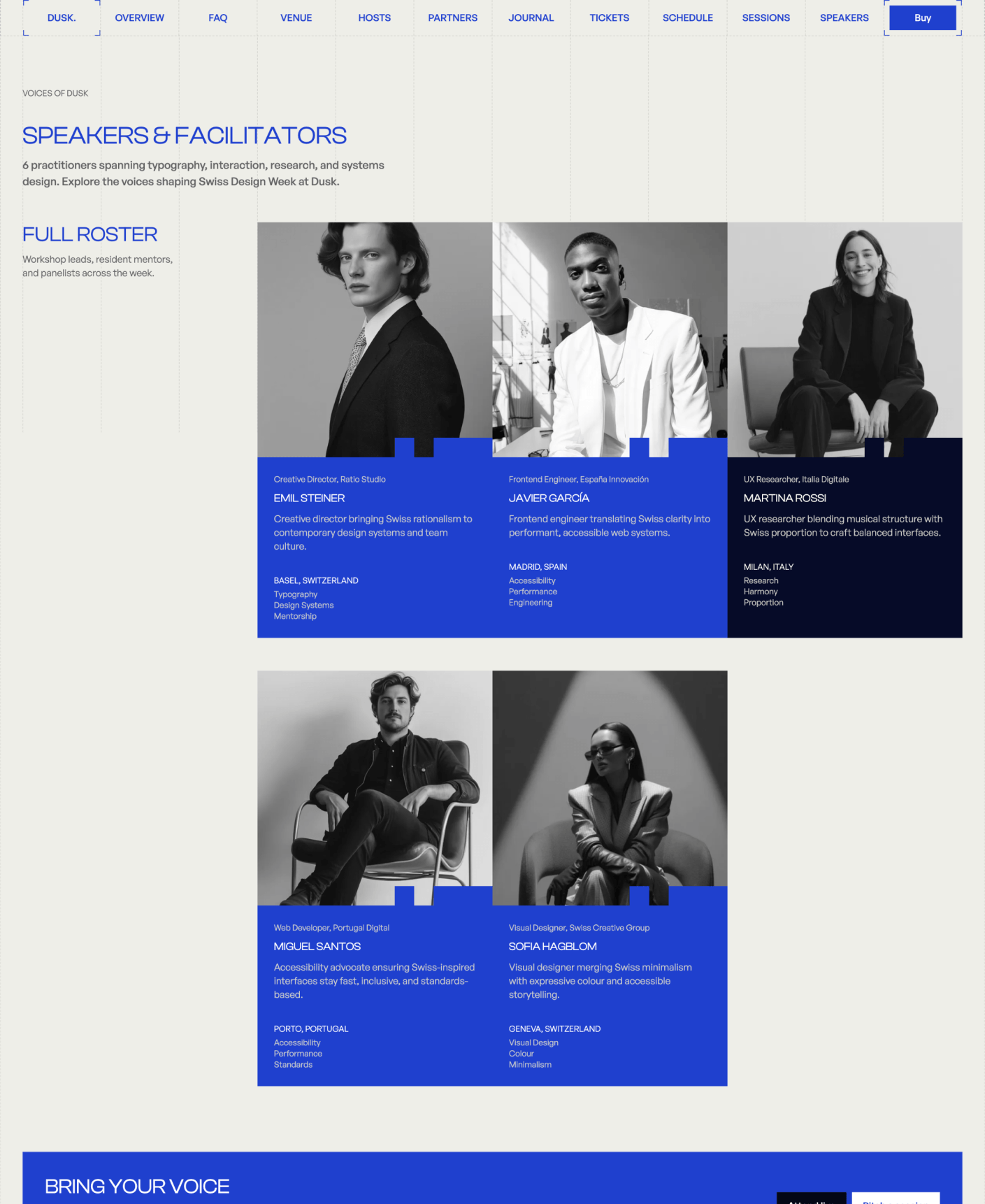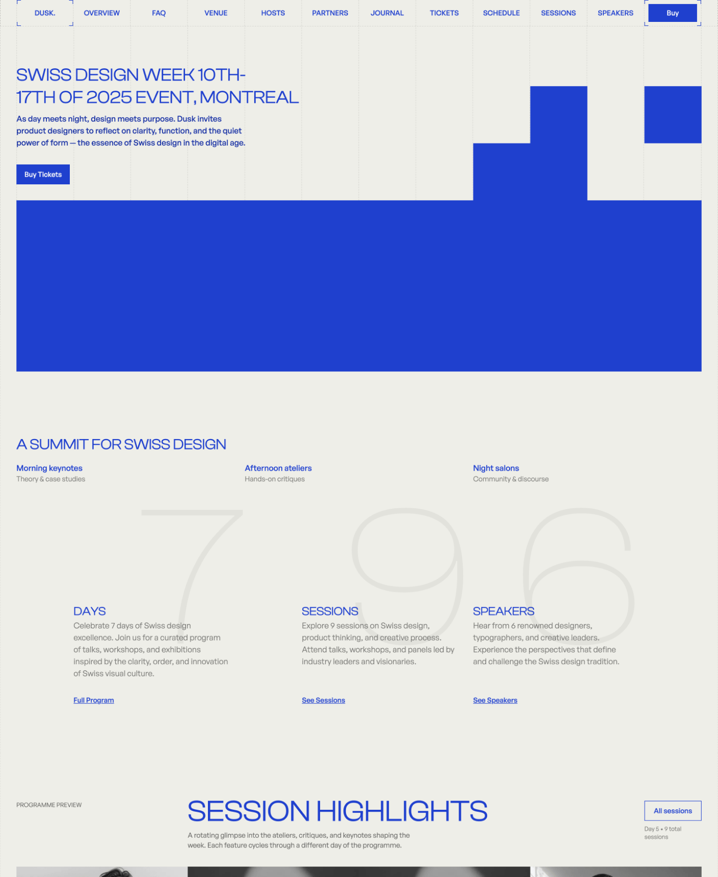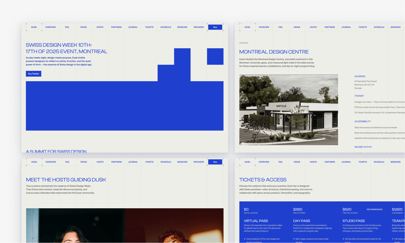 Dusk uses a clean grid, clear typography, and calm and blue accent colors to create order and focus. The layout feels steady and readable, built to guide attention without noise. Every section is consistent, open, and easy to follow.