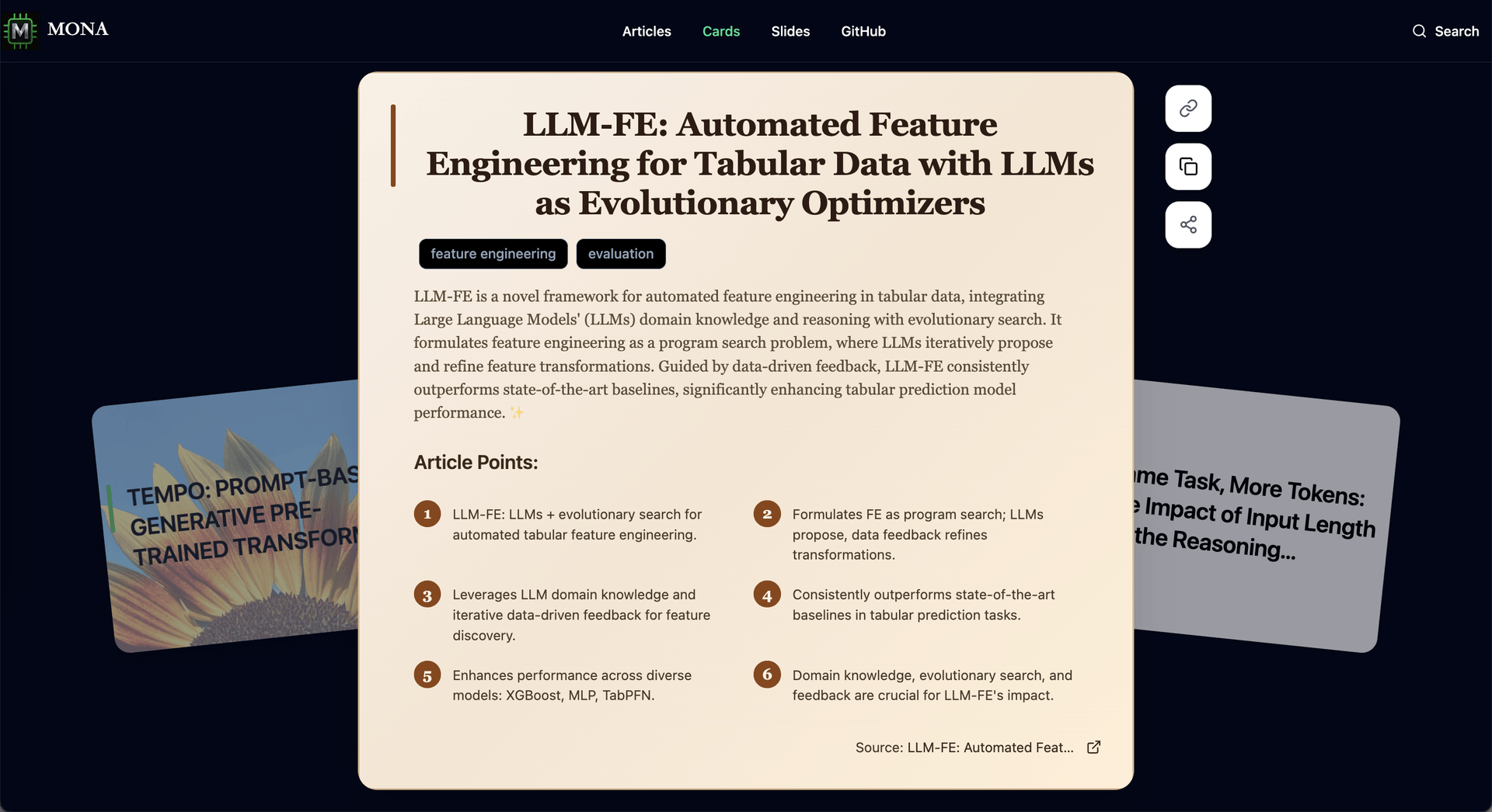 • Knowledge Cards: Research summaries and insights