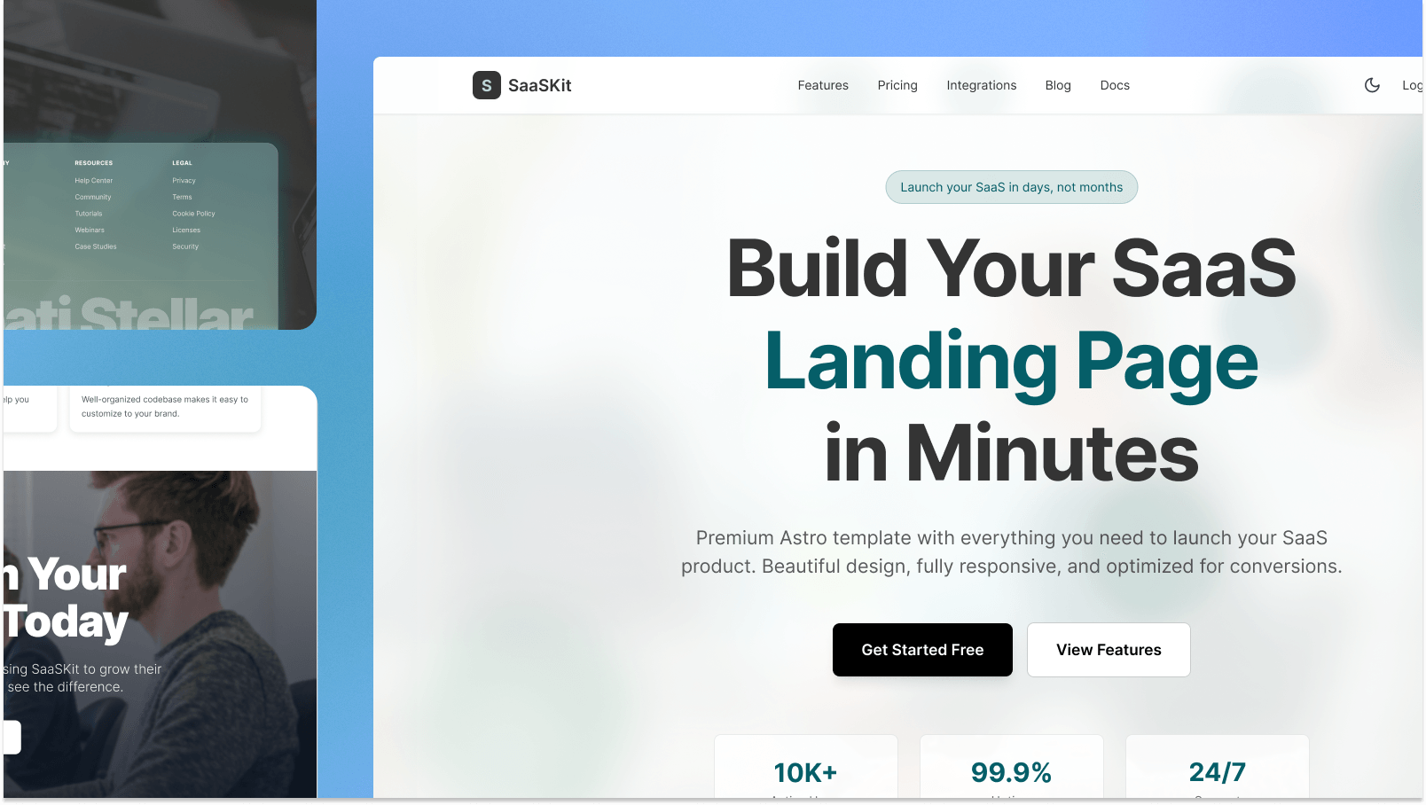 SaaSKit combines Astro's lightning-fast performance with modern React components to deliver a complete landing page solution. Perfect for SaaS startups, product launches, and businesses that need a professional web presence fast.